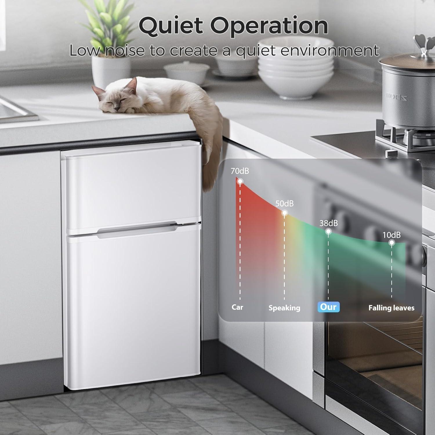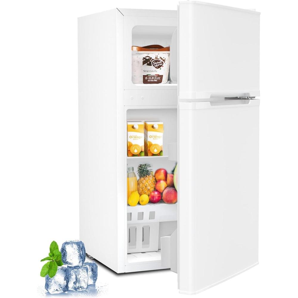 Kismile 4.5 Cu.Ft Mini Fridge with Freezer, Compact Mini Refrigerator with Adjustable Removable Glass Shelves,Small Fridge with 2 Doors for Home,Kitchen,Dorm,Apartmen,White(White)