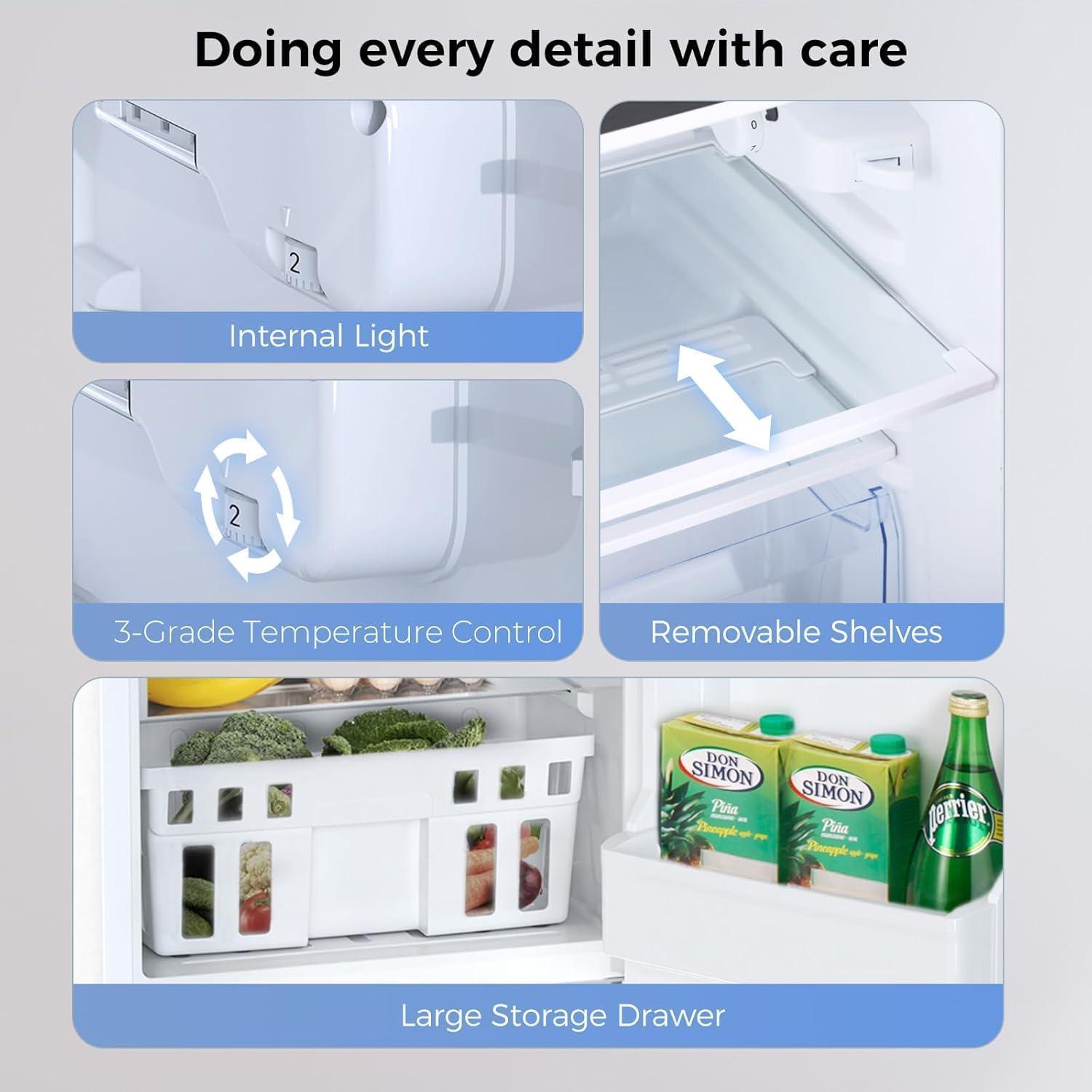 3-Levels Temperature Control: By turning the thermostat knob, the range of the refrigerator temperature control is form position 1 the cold to 3 the coldest.Our refrigerator can be adjusted to refrigerator compartment 32' to 50' F / Freezer temperature is with temperatures typically below 0°F, meeting various temperature requirements