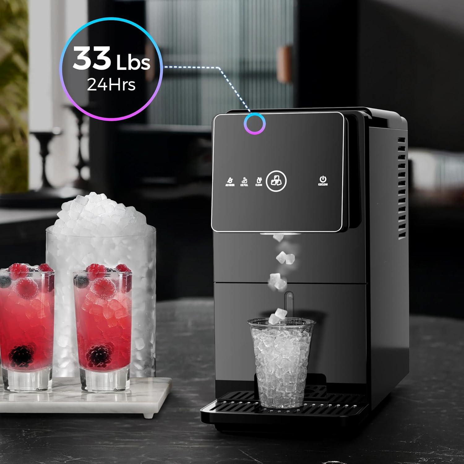 【Chewable Ice, Daily Drinks】Enjoy chewable extruded ice cubes for smoothies, cocktails, iced coffee, or water. Suitable for home or office, this ice maker for home delivers refreshing ice that' s fun to enjoy, standing out among modern ice makers countertop options.