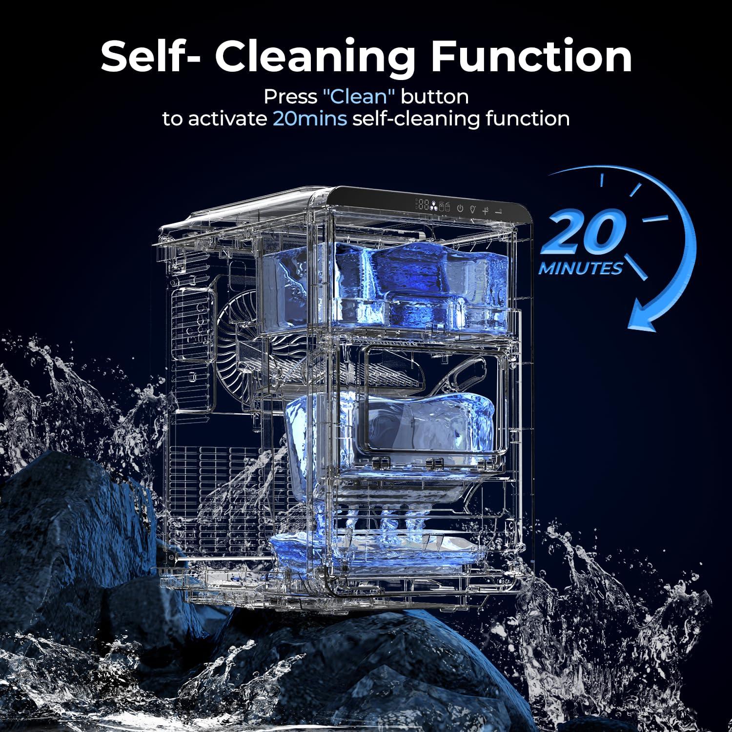 One-Touch Self-Cleaning FunctionAs a self-cleaning ice machine, it features an automatic cleaning mode to eliminate mineral buildup and ensure hygienic, fresh-tasting ice with minimal effort.