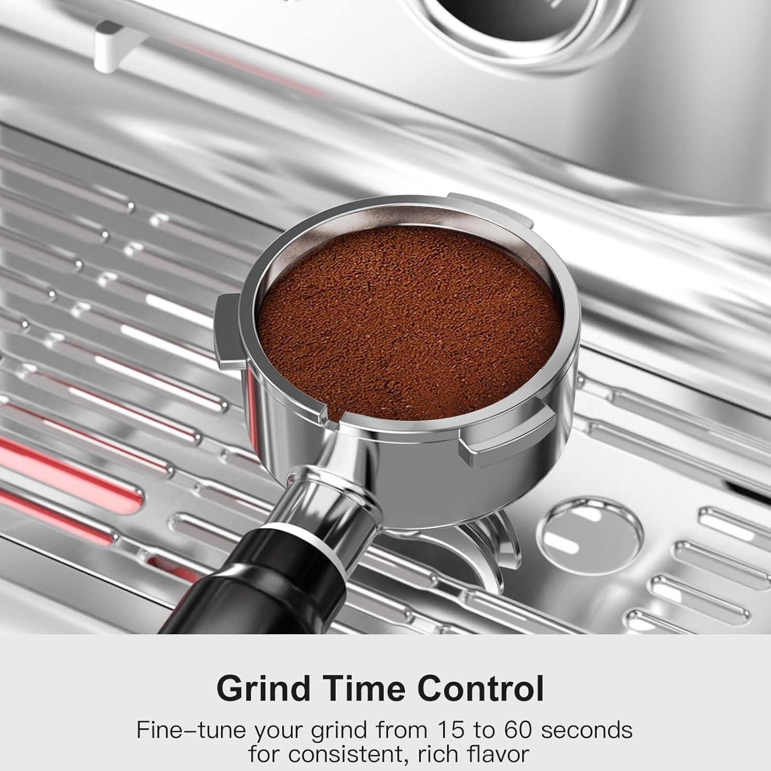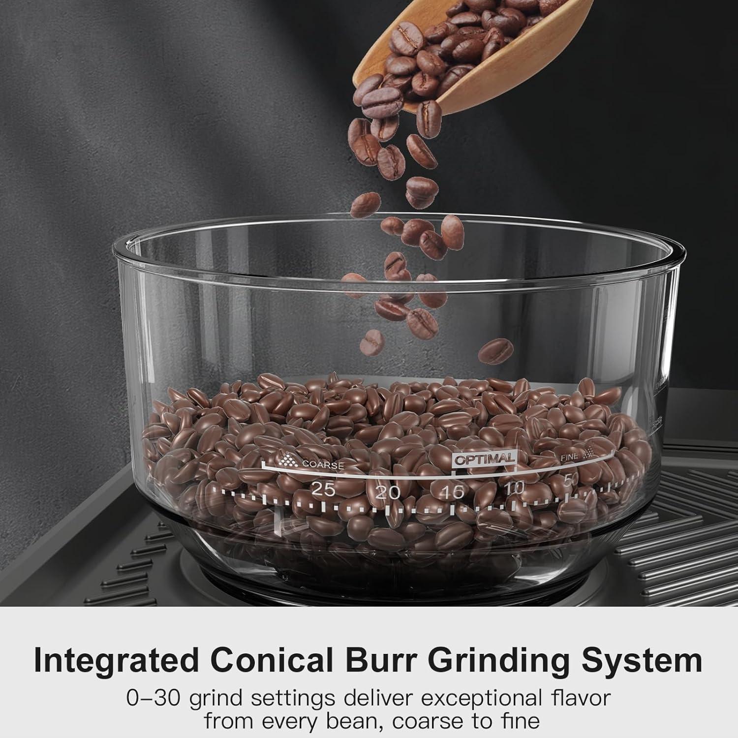 【Fine Grinding & Fresh flavor】This espresso machine with grinder built in conical burr grinder with 30 settings creates even grounds. Grind directly into the 58mm portafilter. This coffee machine, a coffee and espresso maker combo, locks in flavor for authentic espresso from bean to cup