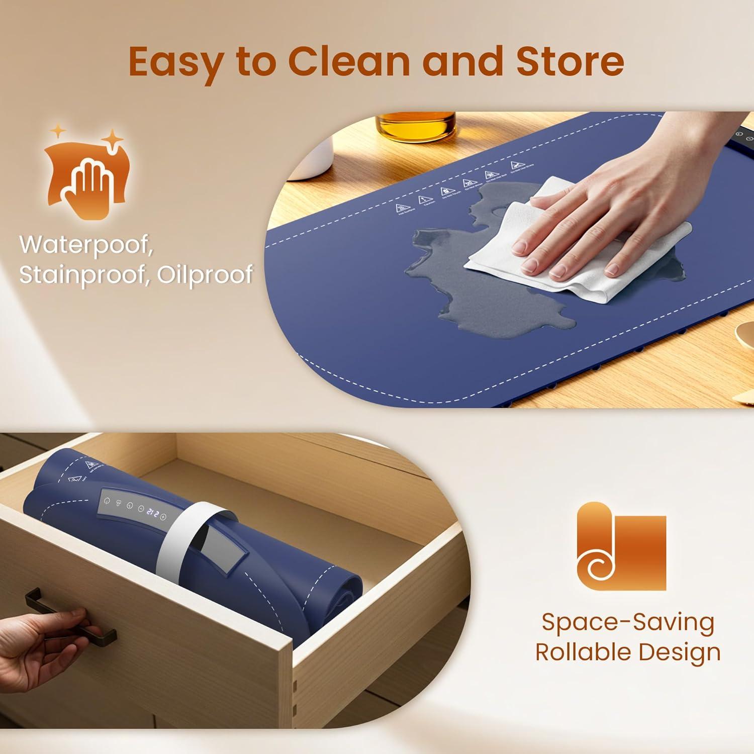 【Premium Material】Made of high-quality flexible silicone nano material, our warming tray offers durability, and can be easily wiped clean after use. The rollable and portable design ensures that it is easy to slip into any drawer or bag, making it convenient and space-saving.