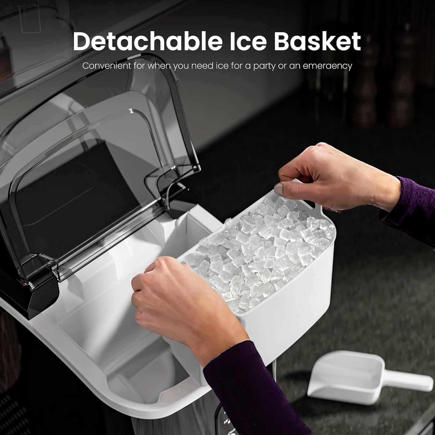 【Portable Design】Measuring only 8.66 x 12.6 x 11.22 inches and weighing only 18.7 pounds, our cube ice maker comes with a removable ice basket and ice scoop for easy access to your ice. Equipped with a sturdy carrying handle that allows you to place our portable ice maker anywhere, perfect for home & kitchen