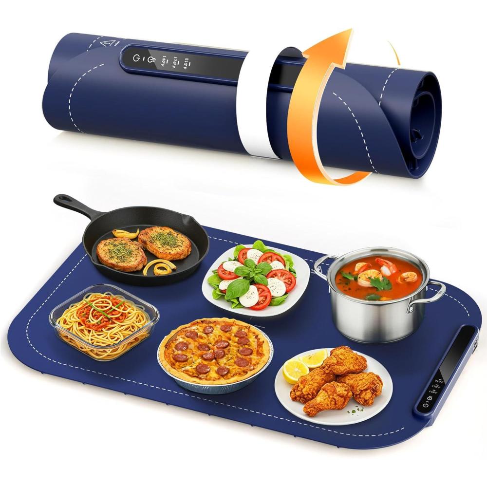 imageKismile Warming Mat for Food 3 Temperature Settings Electric Warming Tray Rapid FullSurface Heating Rollable ampamp PortableVersatile Food Warmers for Parties BuffetEveryday UseWhiteBLUE