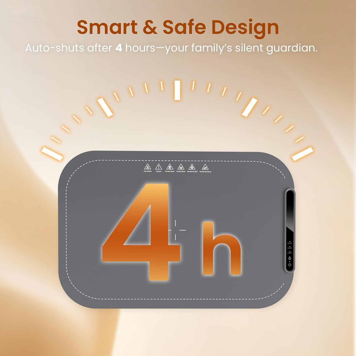 【Versatile Year-Round Use】Our warming tray is a versatile home assistant. It not only keeps your dishes warm during daily meals, but also helps ferment dough, thaw frozen foods. It’s also an ideal gift for Mom, making it easier for her to prepare warm, delicious meals for the family.